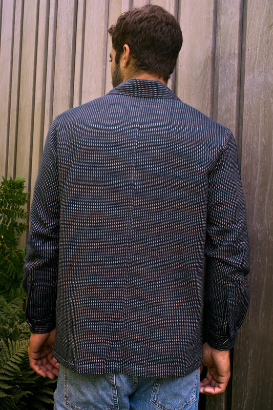 Boxy Jacket - Navy - Hand Embroidered Pocket Detail