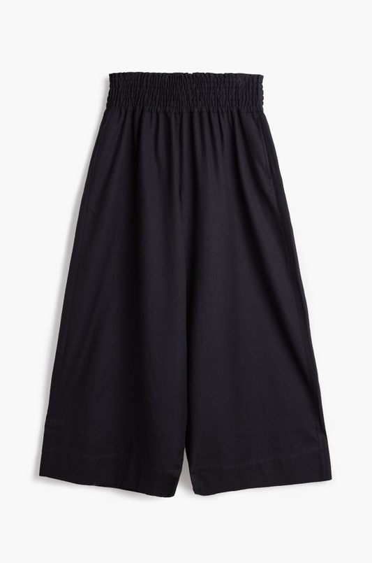 Wide Leg Trousers in Handwoven Organic Cotton - (Medium Weight Twill) - Solid Black