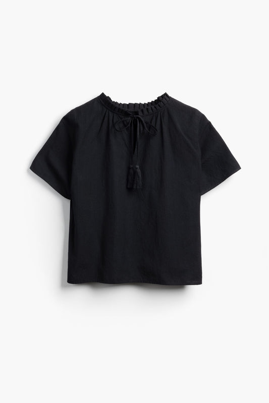 Shayla Top - Reversible Frill-Neck - Black