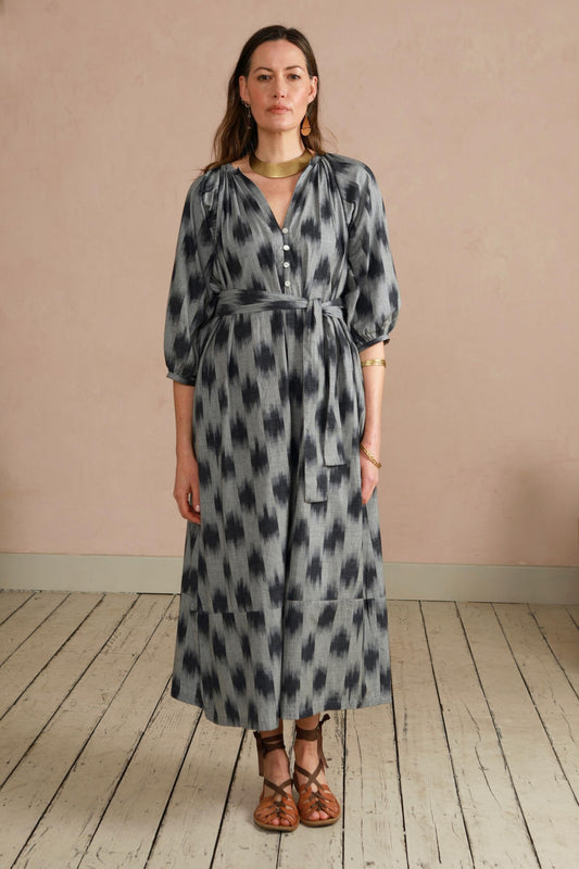 Safari Dress - Grey ikat Weave - with tie belt
