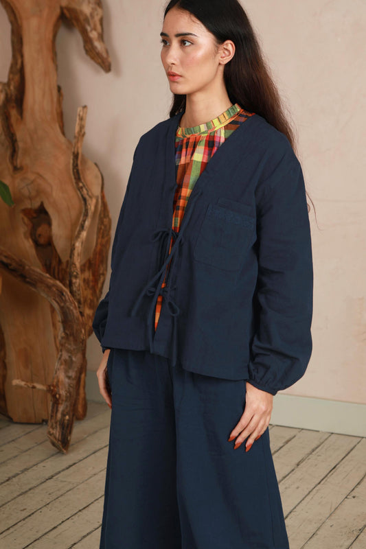 Shay Tie Jacket - Navy Twill with Hand Embroidery