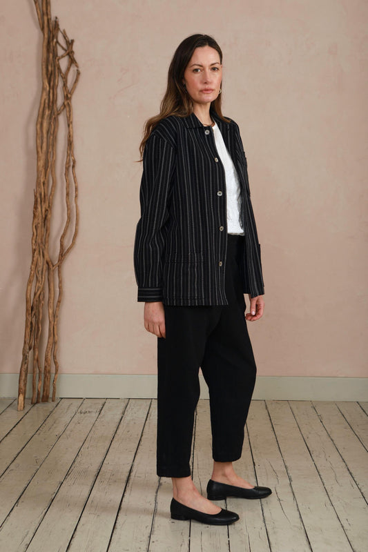 Wide Leg Trousers in Handwoven Organic Cotton - Black Stripe