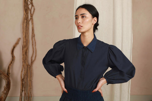 Effie Puff Sleeve Blouse - Navy