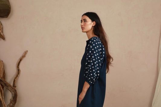Daisy Dress - Hand Embroidered - Navy