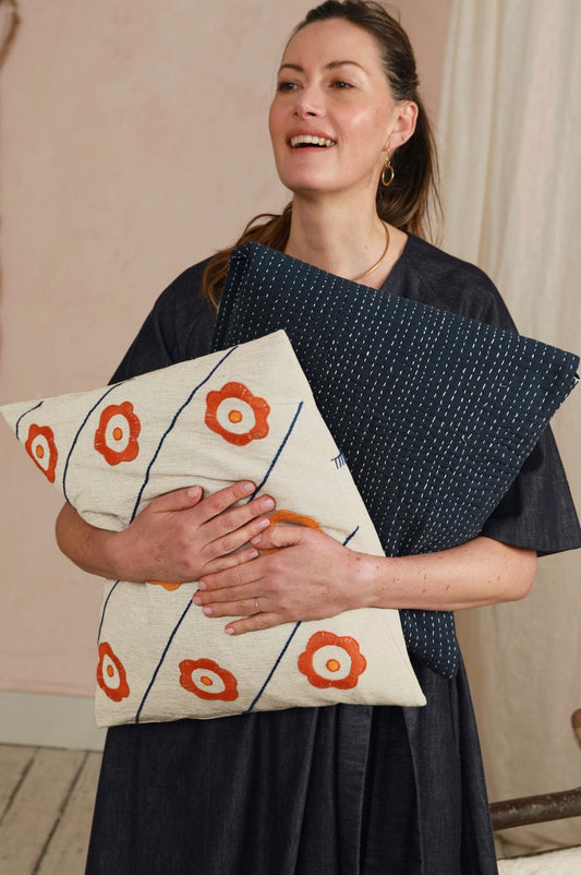 Flower Power Cushion Cover - Hand Embroidered