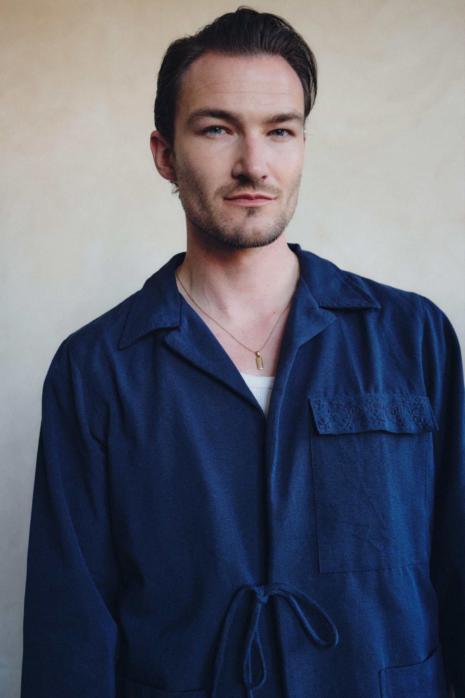 A modern classic reimagined, this Boxy Jacket in Deep Navy offers clean lines and artisanal character. With a structured, relaxed silhouette and front-tie detailing, it brings quiet confidence to everyday layering. Each piece is finished with subtle hand embroidery by skilled artisans, blending heritage craftsmanship with contemporary design.