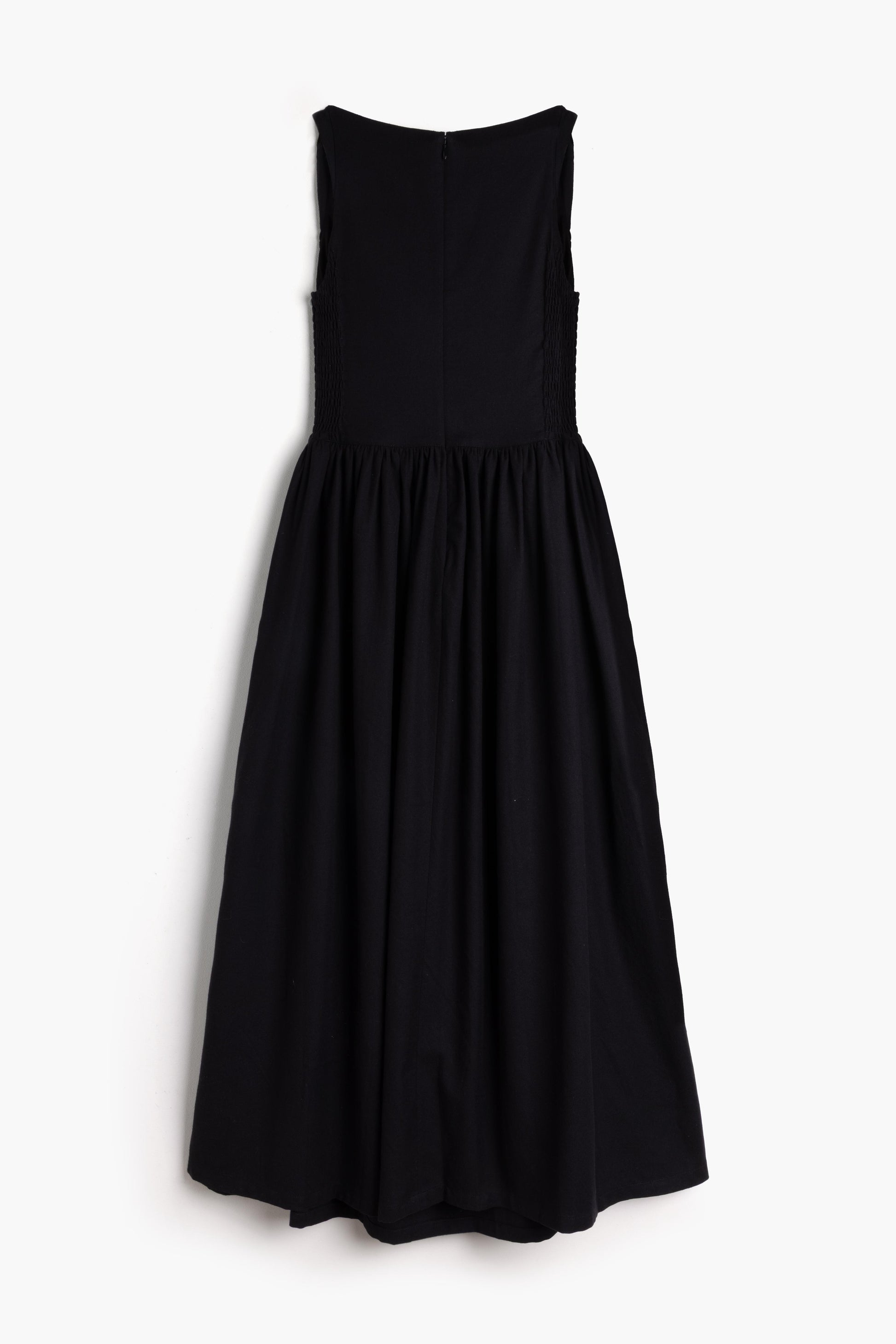 The Celia Cowl Neck Dress in Handwoven Organic Cotton - Black Twill
