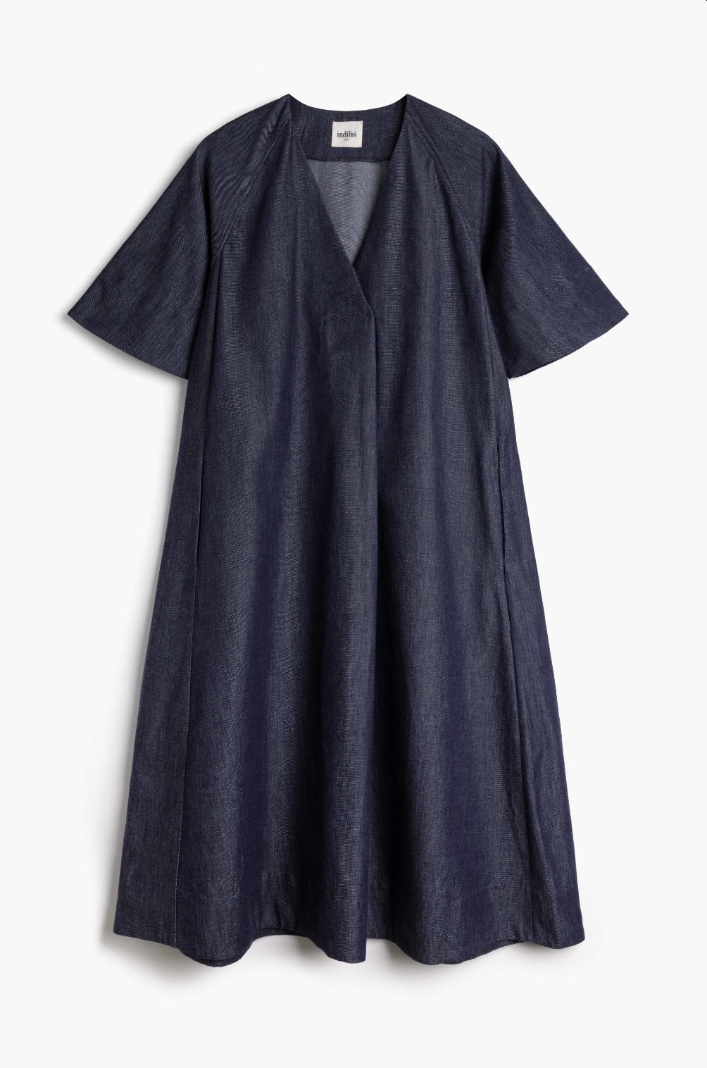The Rebecca Dress is a standout piece from a limited collection that celebrates the versatility of the dress. Wear belted or loose, as it is or with a roll neck underneath it. Designed to flatter every figure, its elegant V-neckline and adjustable tie-belt create effortlessly chic silhouette, while the breathable 100% Organic Cotton Denim Chambray delivers comfort that transitions seamlessly from day to night. One you'll reach for again and again!