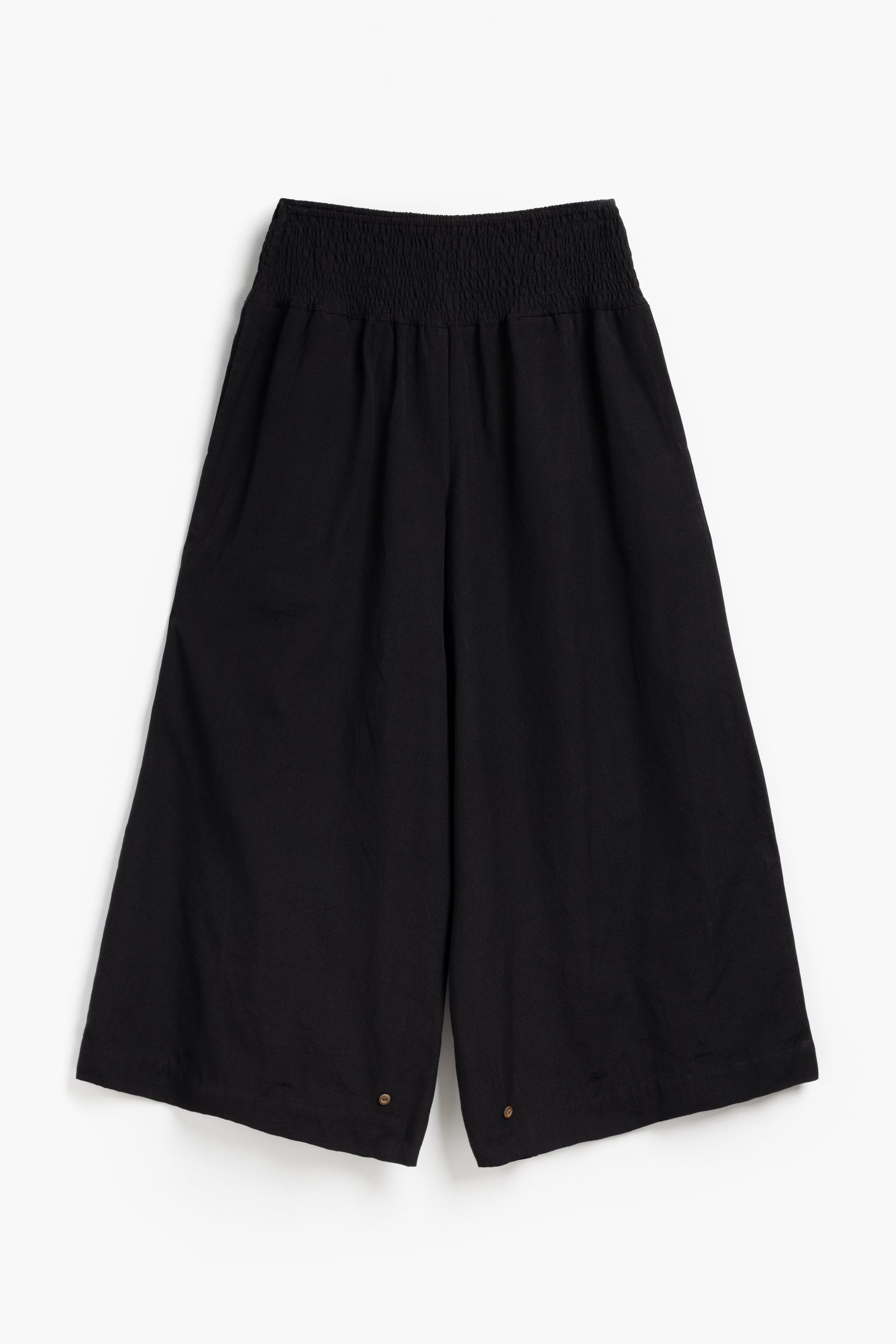 Handwoven from 100% organic cotton, these medium-weight trousers are breathable and go to ease. With a shirring elasticated waistband, functional inseam pockets, and hand-finished detailing make them as comfortable as they are statement-making.