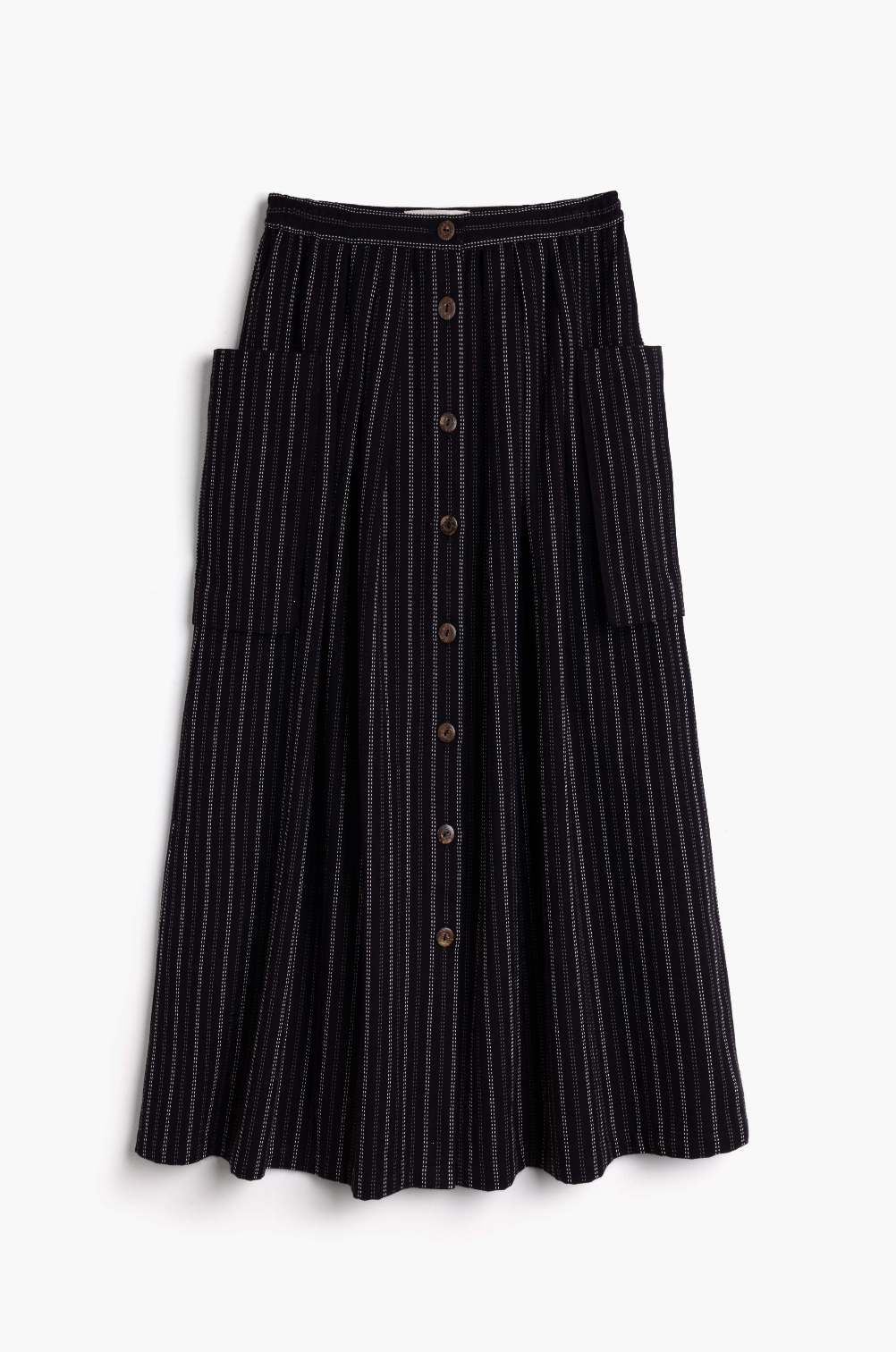 Ruth Skirt in Handwoven Organic Cotton - Black Stripe Stitch