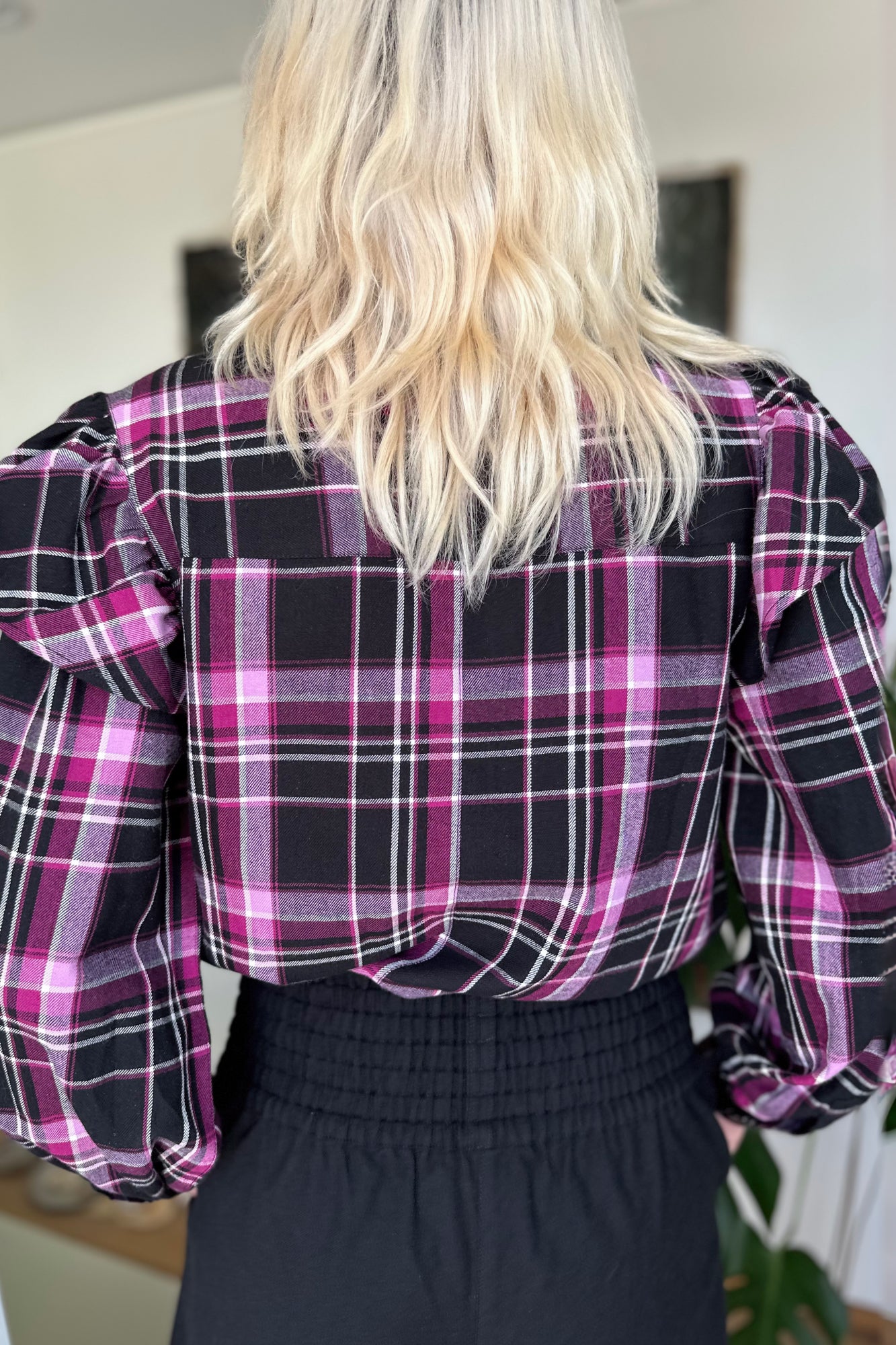 Statement Frill Shirt - Berry & Black Check
